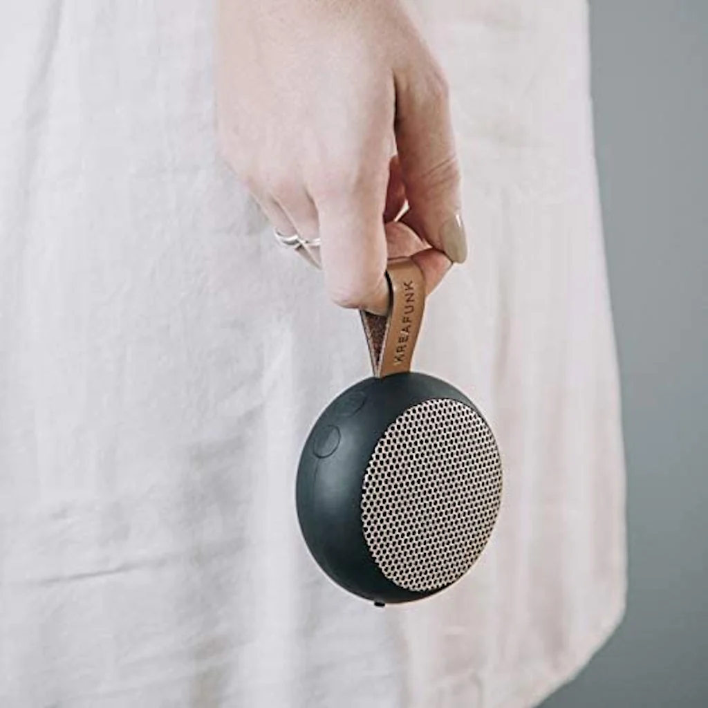 AGO is the small sound miracle from Kreafunk. The compact Bluetooth speaker in a sleek, minimalist design with a diameter of 8 cm really fits in any pocket. The portable speaker can not only be seen, but also be heard because it delivers great sound. Whether you are planning a trip to the beach, a garden party or just a relaxing evening at home, aGO is your constant companion and allows you to enjoy up to 15 hours of music on a full charge. Do you like to listen to your favourite music in the shower? No problem, as aGO is splash-proof and can be used in the bathroom without any concerns. Like all Kreafunk® products, aGO comes in a beautiful, high-quality wooden box.