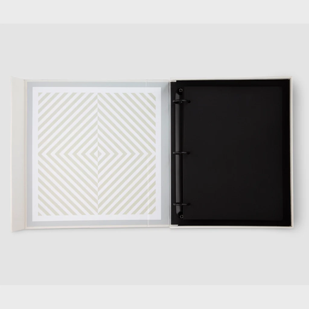 Material Acid free and FSC cert. 18% polyester 2% cotton 55% gray board 15% paper 10% metal ring
